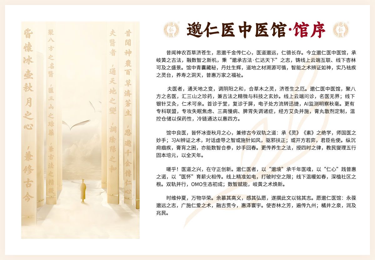 邈仁中医创循“岐黄古法+数智诊疗”双轨并融体系,将千年中医古法融入现代Ai辩证施治,专攻:失眠焦虑|三高慢病|脾胃失调|心肺肝胆|儿童体质|皮肤顽疾|妇科调理|男科养护等中医专科专病诊疗,让疑难杂症有“医”可循。